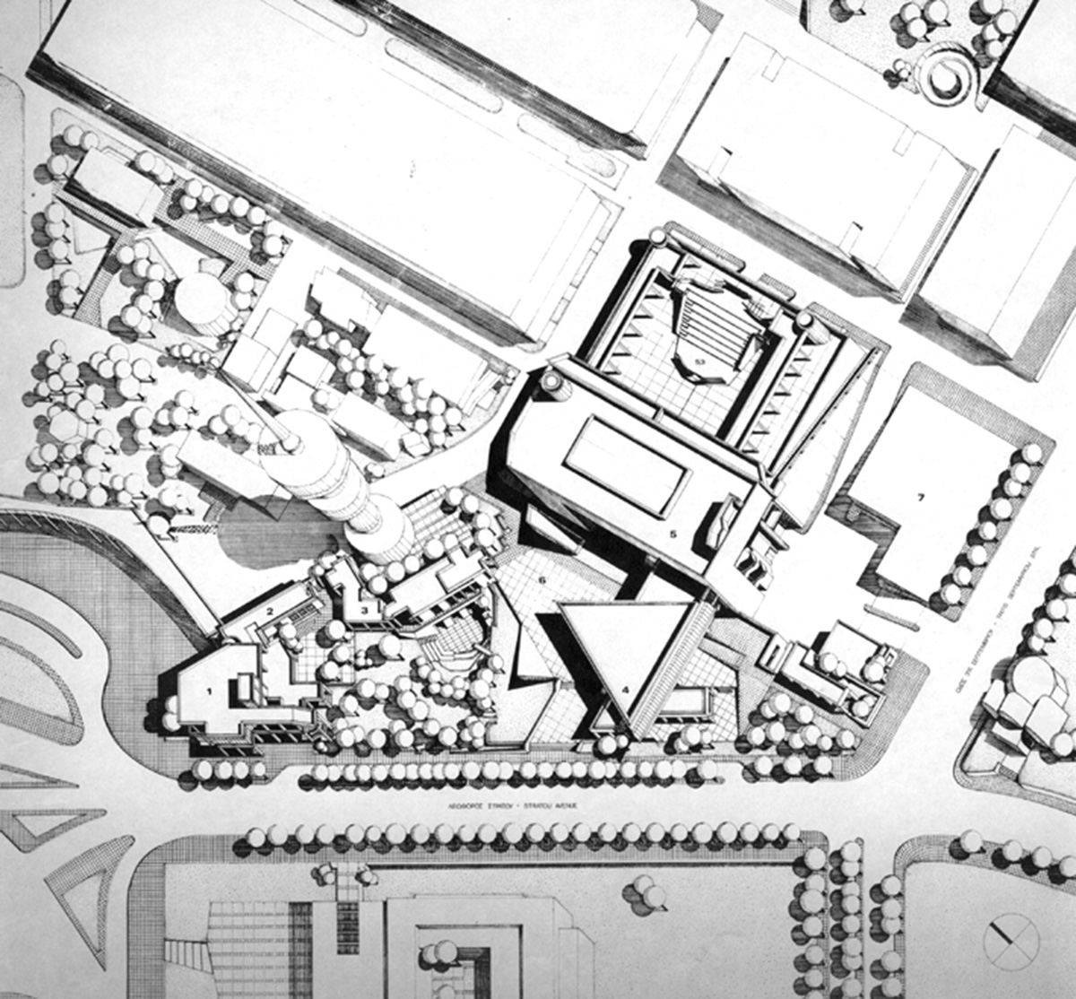 Κατάργηση της περίφραξης του χώρου της Δ.Ε.Θ. Η περιοχή η οποία γειτνιάζει με την πόλη εντάσσεται πλήρως σ’αυτήν με παιχνιδότοπους, αναψυκτήρια, εστιατόρια, μικρή αγορά και δημόσιες εξυπηρετήσεις αλλά κυρίως με δύο χώρους για πολιτιστικές εκδηλώσεις: την αίθουσα εκθέσεων και το υπαίθριο θέατρο. Το σύνολο των κτιρίων οργανώνεται γύρω από ένα μεγάλο υπαίθριο χώρο.